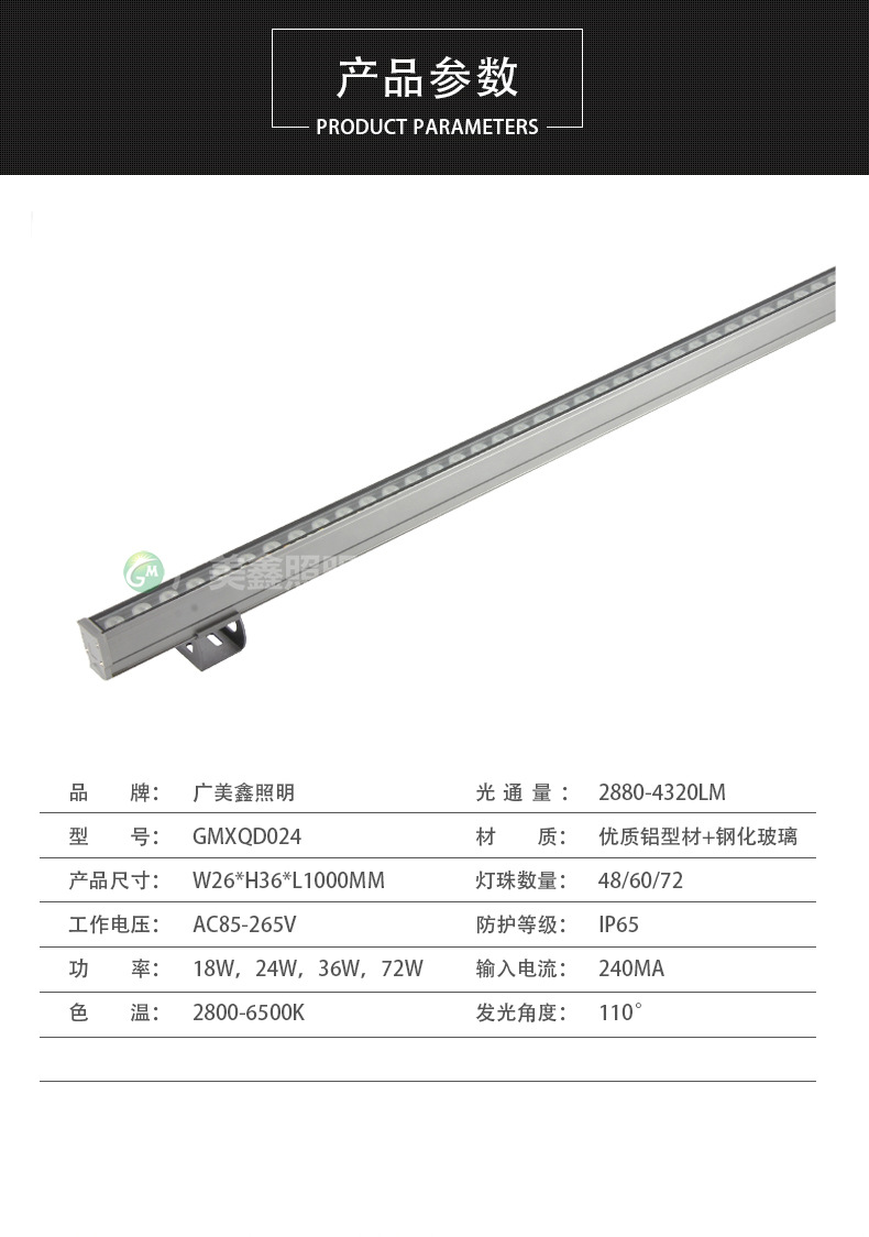 Color rendering index | 80 | LED lamp beads | 48/60/72 | Shell material | Aluminum alloy |