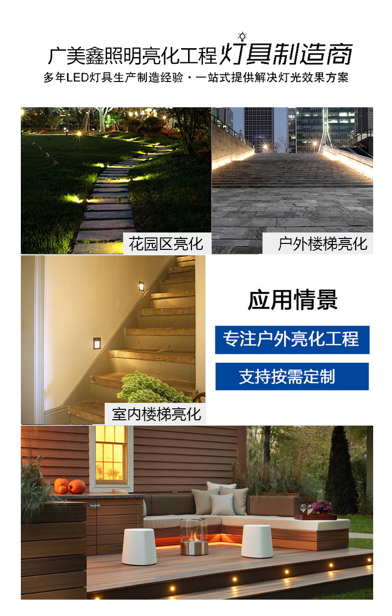 Shell material | Aluminum alloy | Weight | 200(g) | Scope of use | Stairs corner lawn plaza |